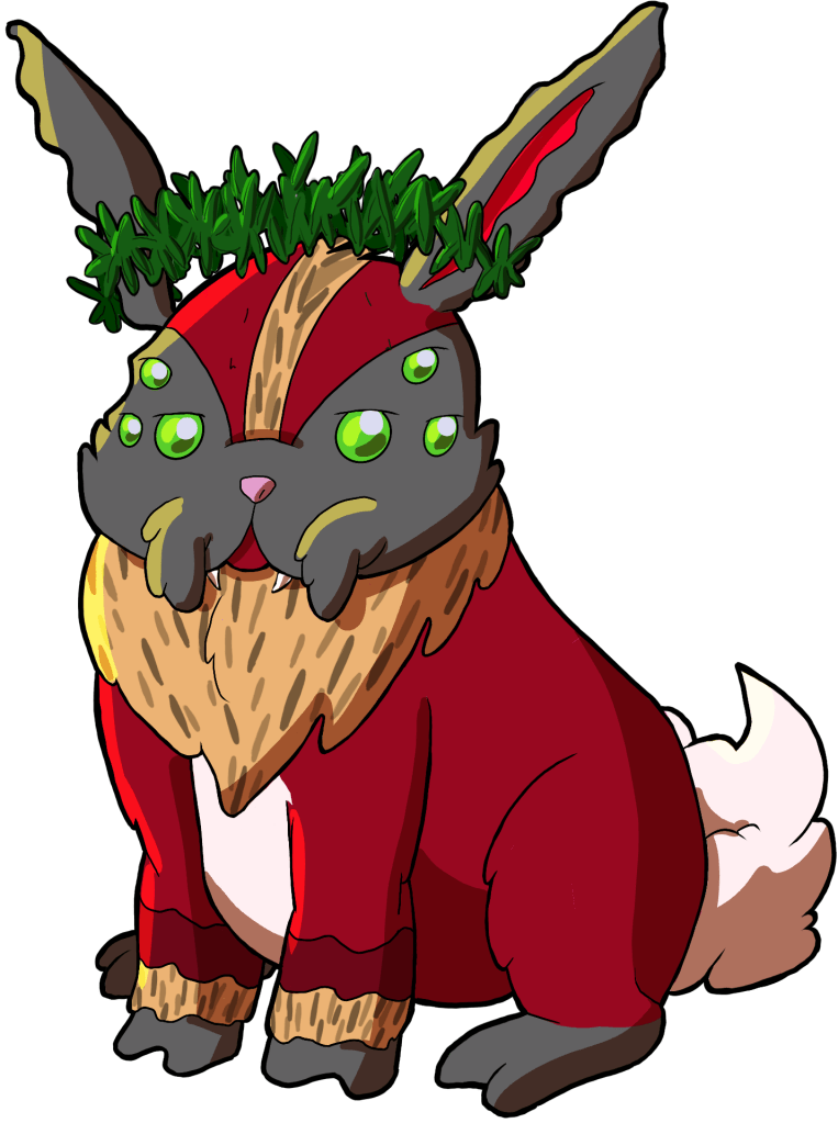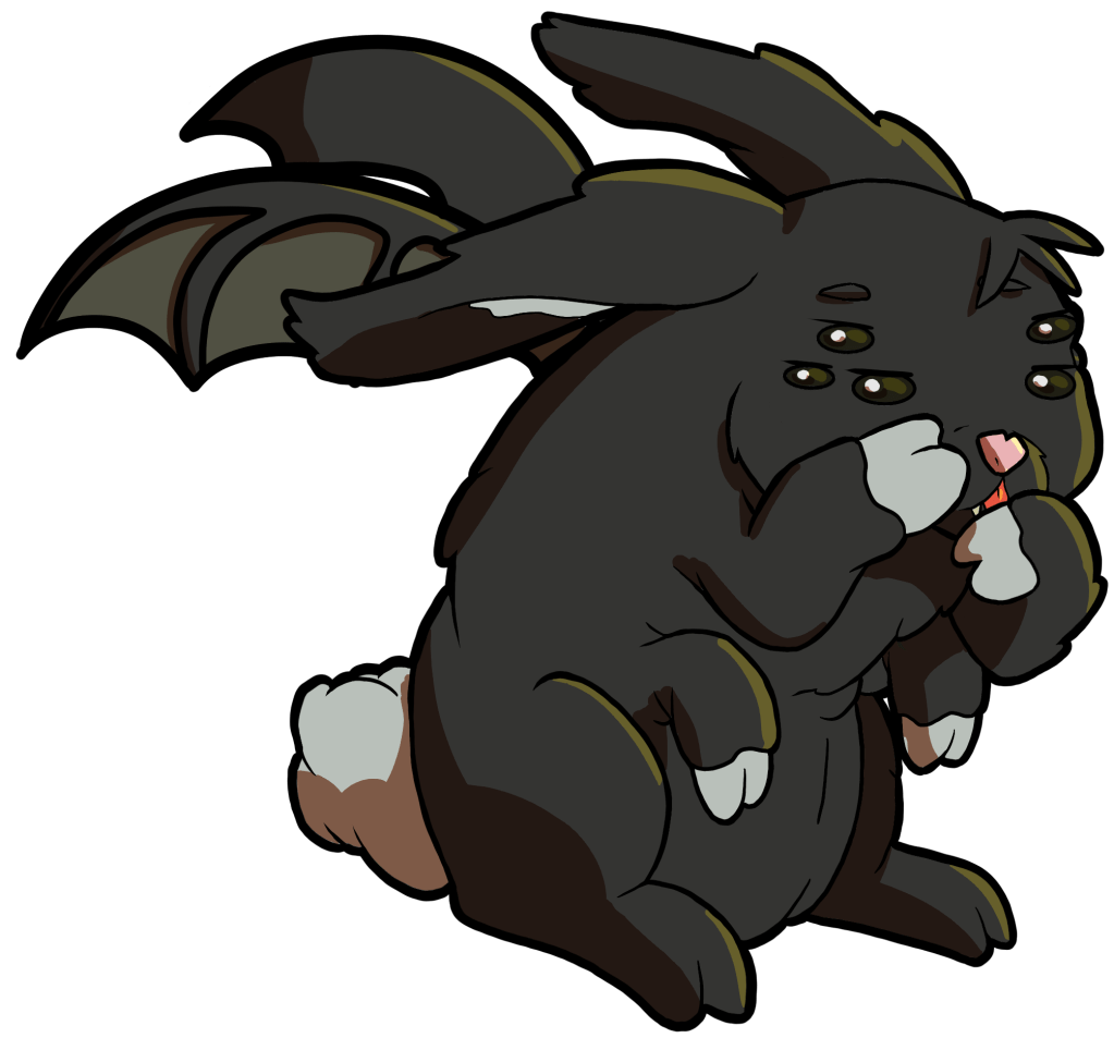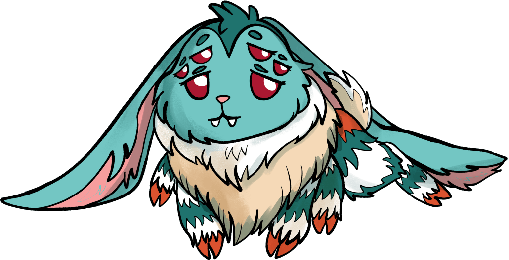 5e Bonus: Hare-Witch Projects – Sprabigail carries her own alchemical tools, functioning as a Herbalism Kit and that her owner has proficiency with. During a short rest, Sprabigail and her owner can choose to forgo the benefits of resting, instead attempting to duplicate a potion in their possession by making a skill check with their proficiency bonus. Potions must be of Common Rarity (DC 10) or Uncommon Rarity (DC 15). On a success, the potion is duplicated and this feature cannot be used for 24 hours as Sprabigail restocks her components. On a 1, no duplicate is created and Sprabigail somehow misplaces the original potion.who hear it, allowing him to target a creature within 30ft. that can hear him and using his action to grant disadvantage on their attack rolls until the end of their next turn.
