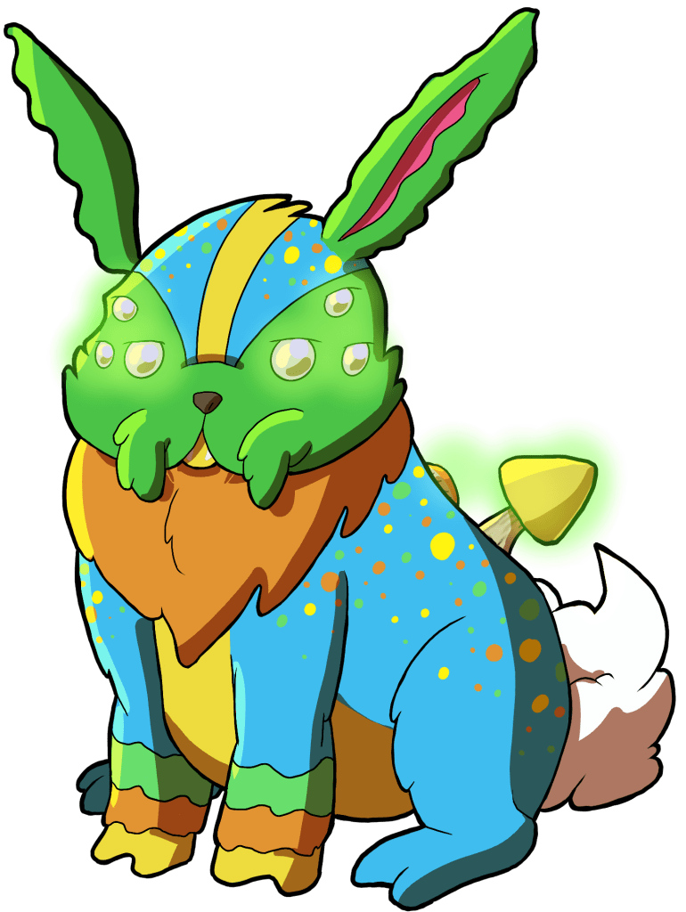 About: Careful now, Fun-Gi is a tricky one. One moment, he looks small enough to fit in your hand, and the next, big enough to rival most large dogs! Is he just fluffing out his fur, or actually changing his size? It’s hard to say, but he knows how to use his size to his advantage, in any case. What a Super Sprabbit!