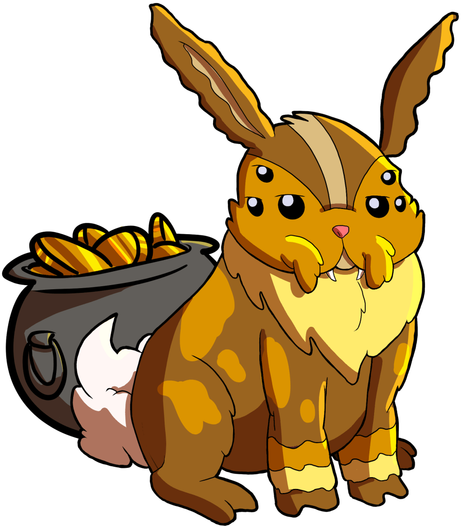 5e Bonus: Sprabbit Tax – Ingot has a Charisma score of 13. Ingot and his owner gain +1 to Charisma checks involving the exchange of goods and services. On a long rest, Ingot will leave if possible, quickly returning with 1d4 gold for his own pockets. Once per day, his handler can make a DC20 Charisma check of their choice to convince Ingot to share half of his personal stash, rolling with disadvantage if no business has been conducted in the last 24 hours.