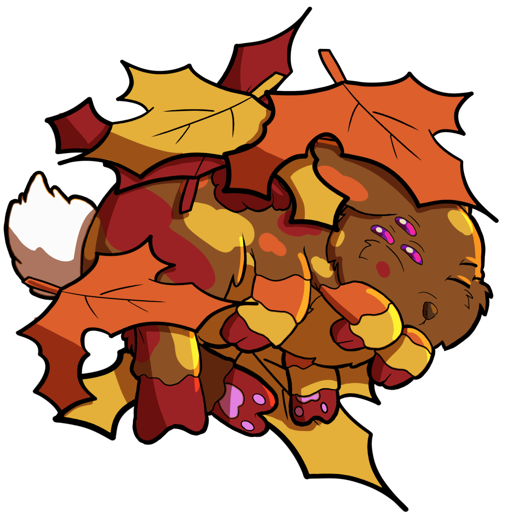 About: Wants to be leaft alone – You may not believe it, but Rustle loves to be around people! He just prefers it if they don’t know he’s there. Timid but kind, the fastest way to his heart is to let him be, but he’ll always leap and the chance to help his friends with a sneaky swipe of an item or two! He’s developed a knack for blending into his environment, and look how happy he is when I give him this leaf! Wait… where did he go?